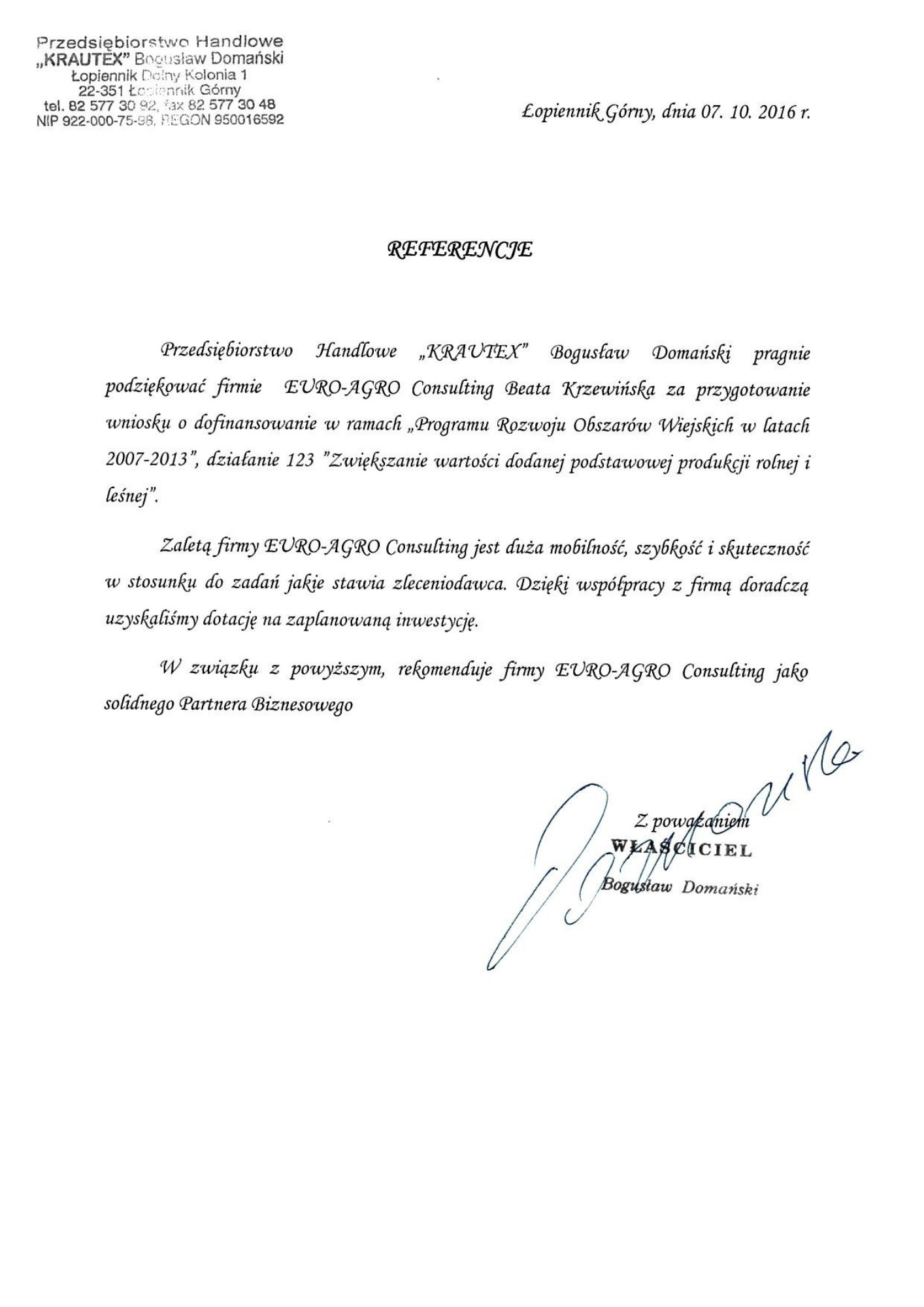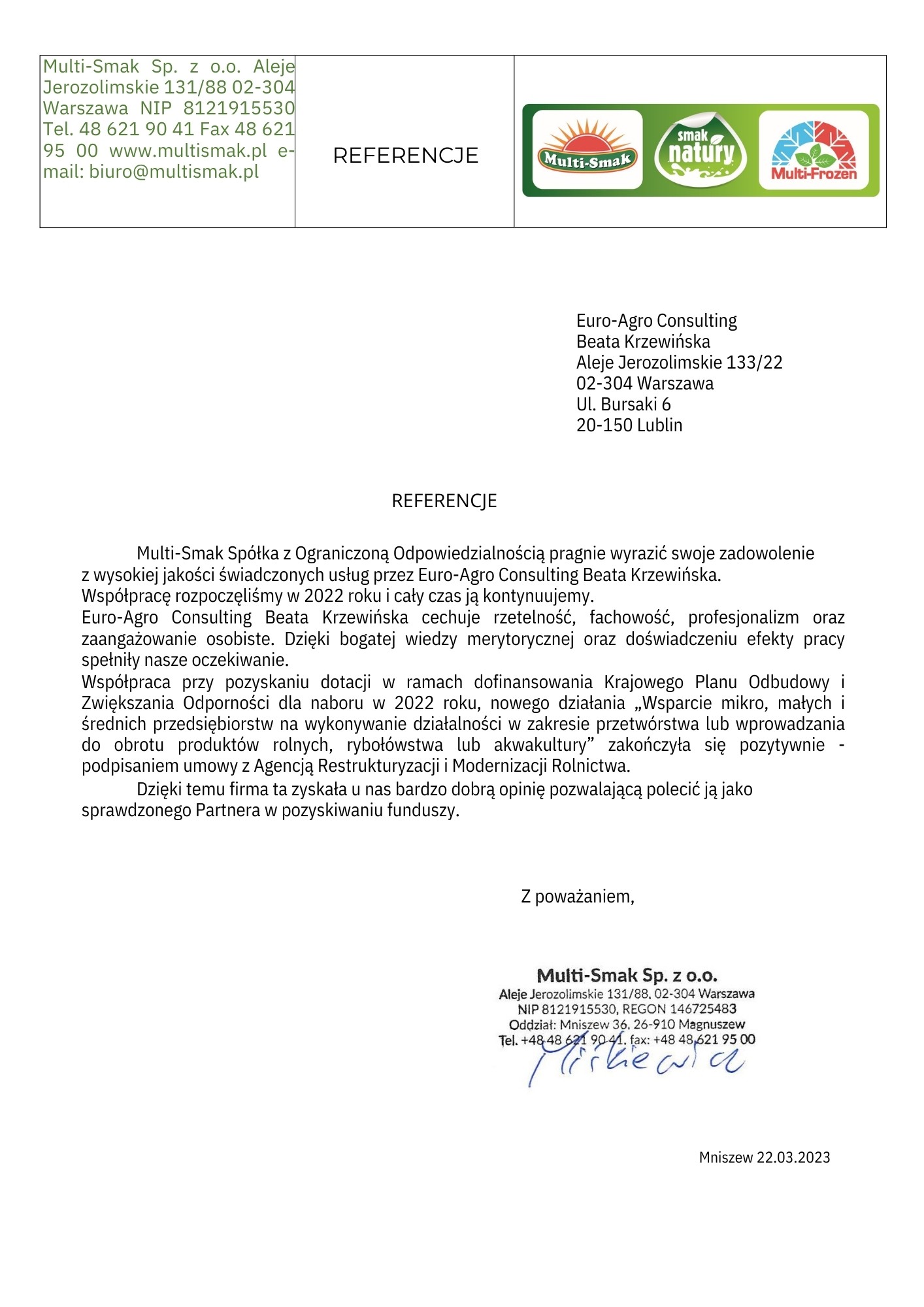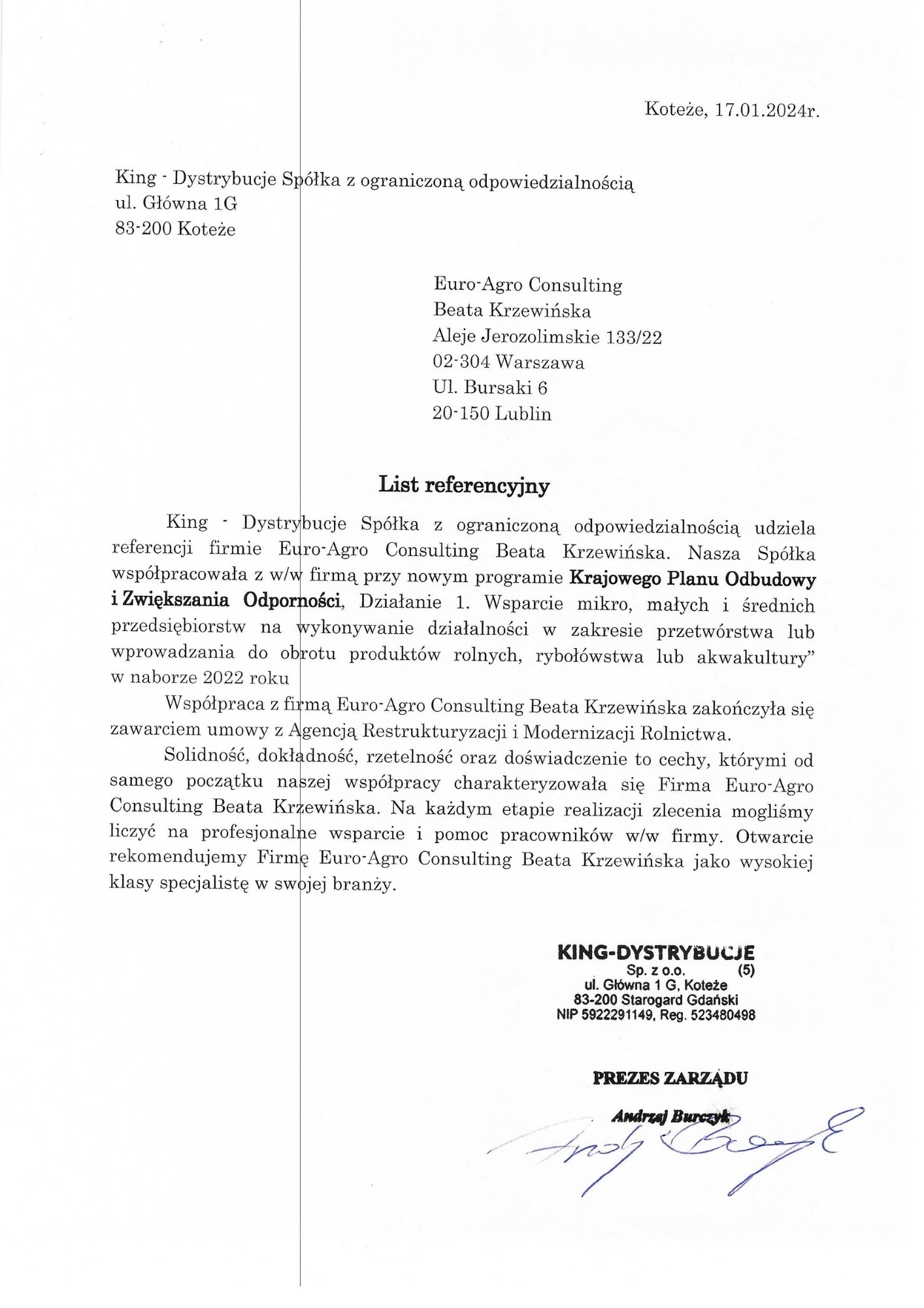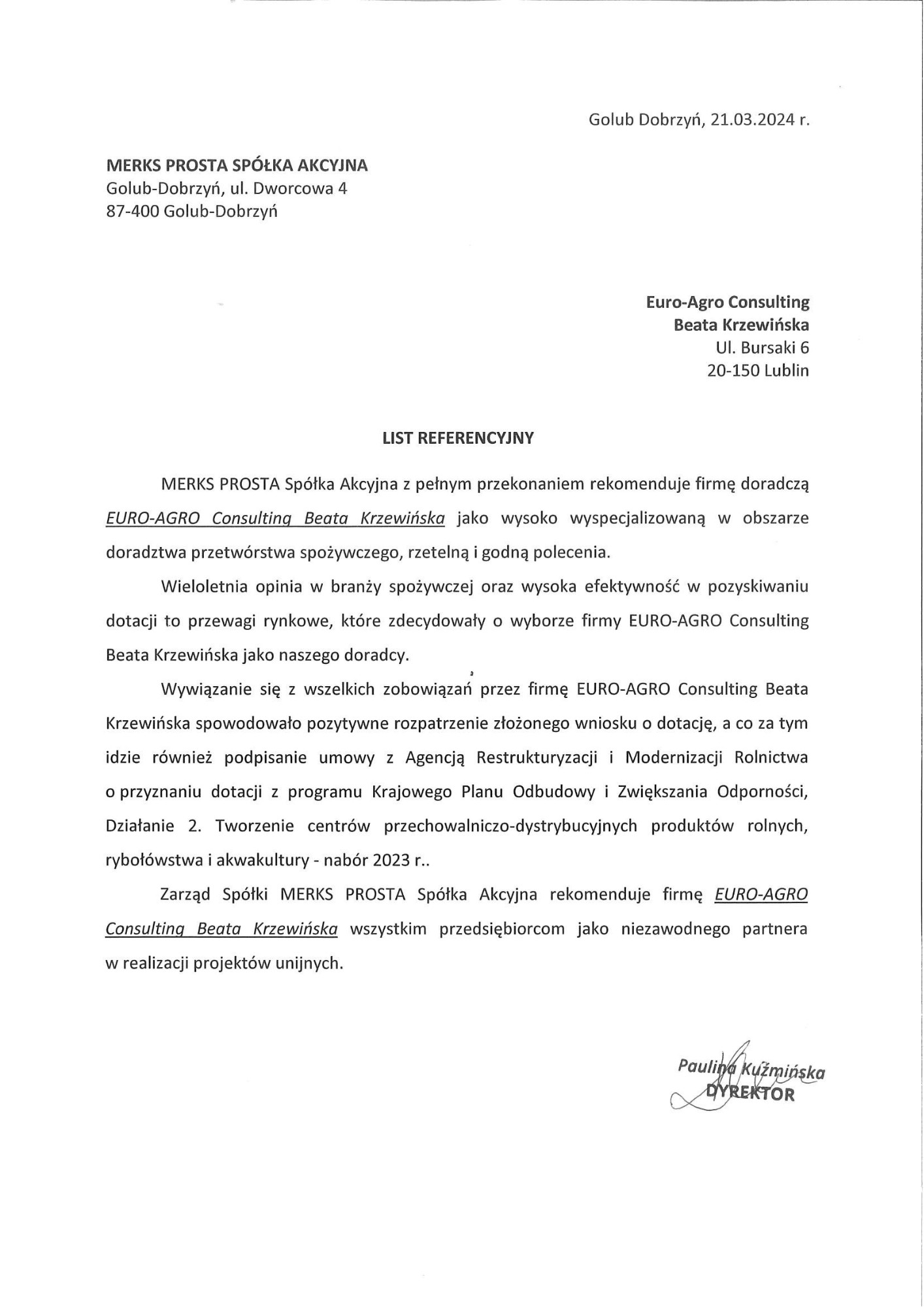 Przeczytaj listy referencyjne od firm z branży przetwórstwa i logistyki żywności, które z naszą pomocą zdobyły finansowanie i bezpiecznie zrealizowały inwestycje.